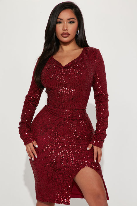 Emmy Sequin Midi Dress Burgundy | Fashion Nova, Dresses